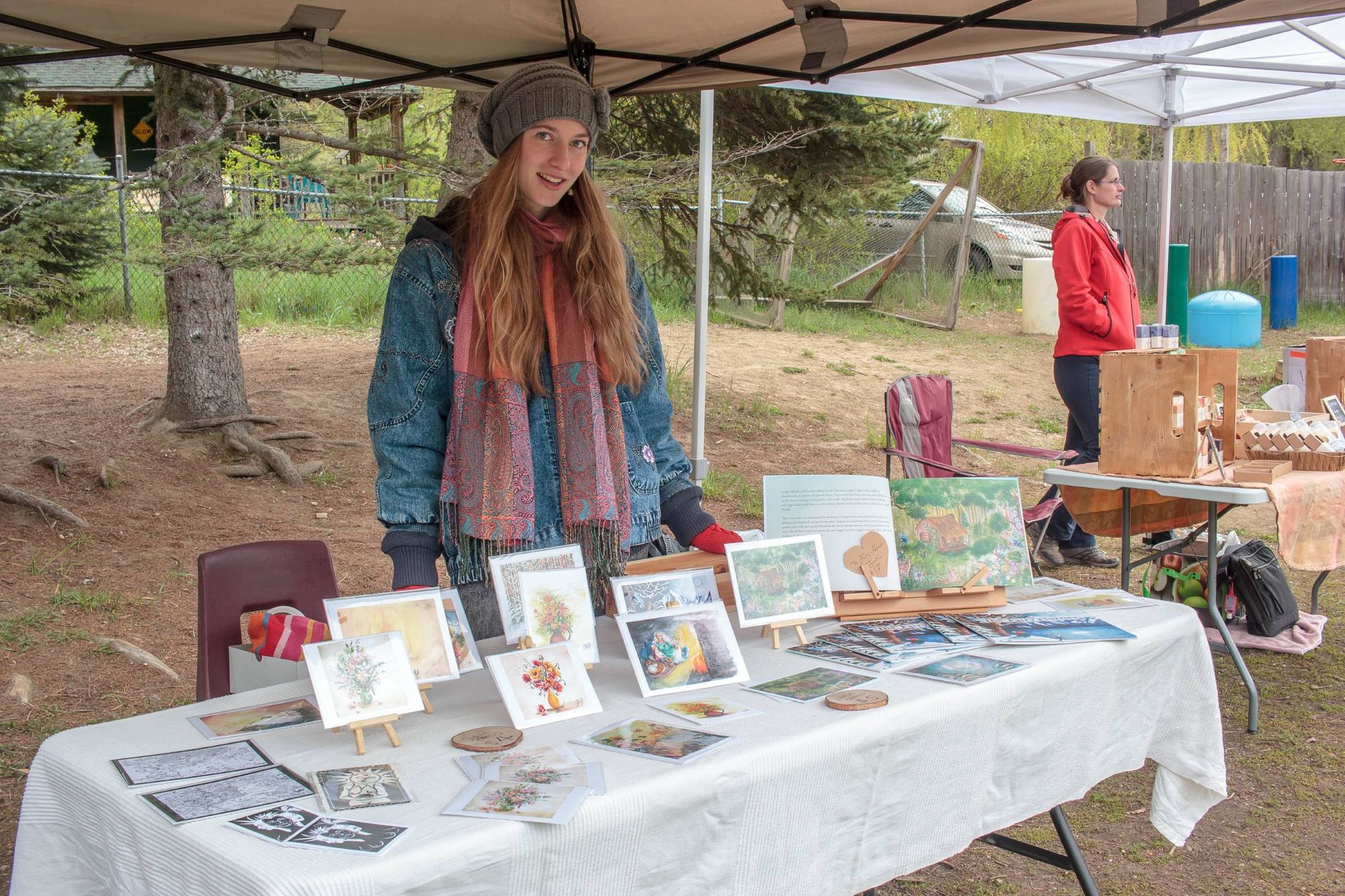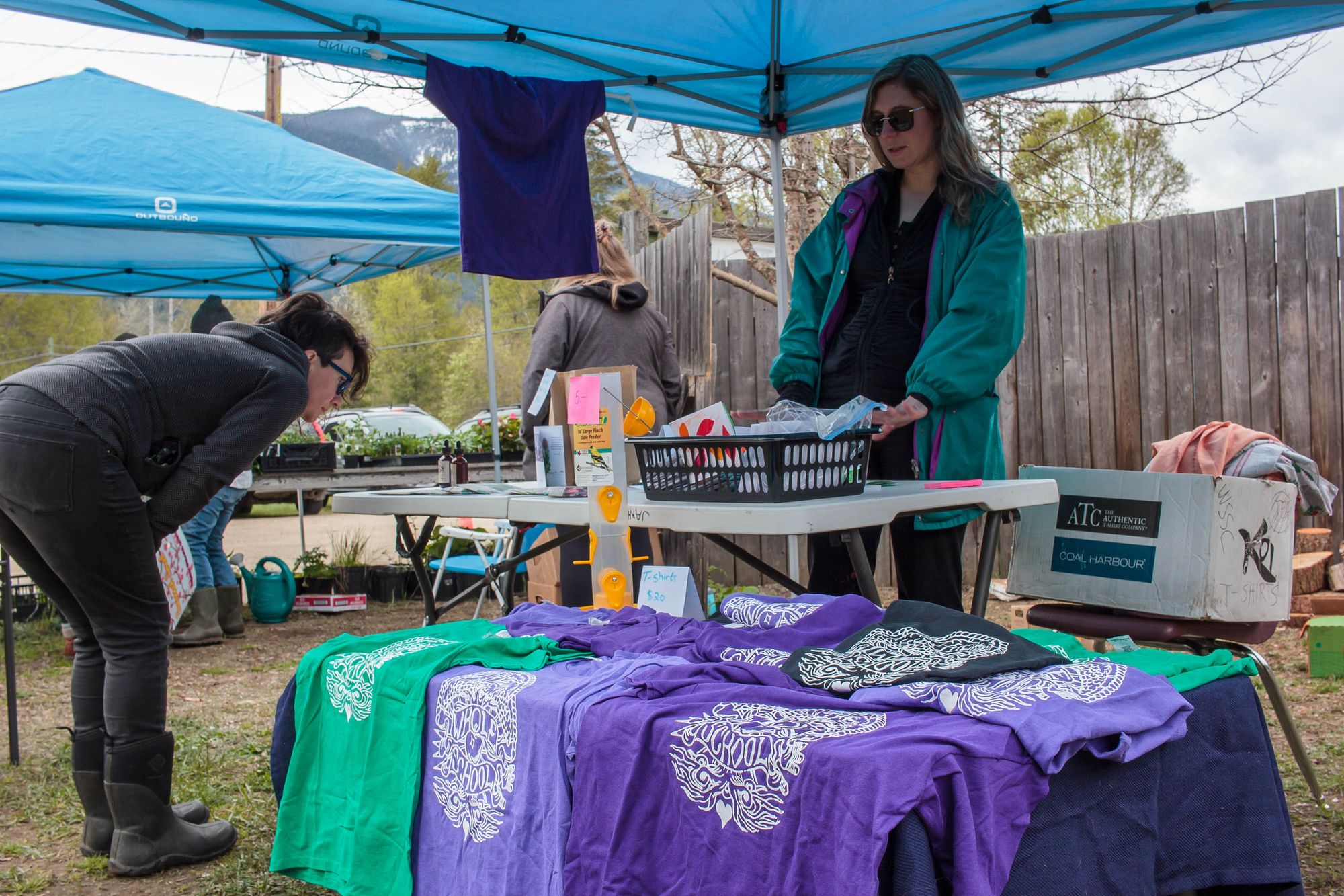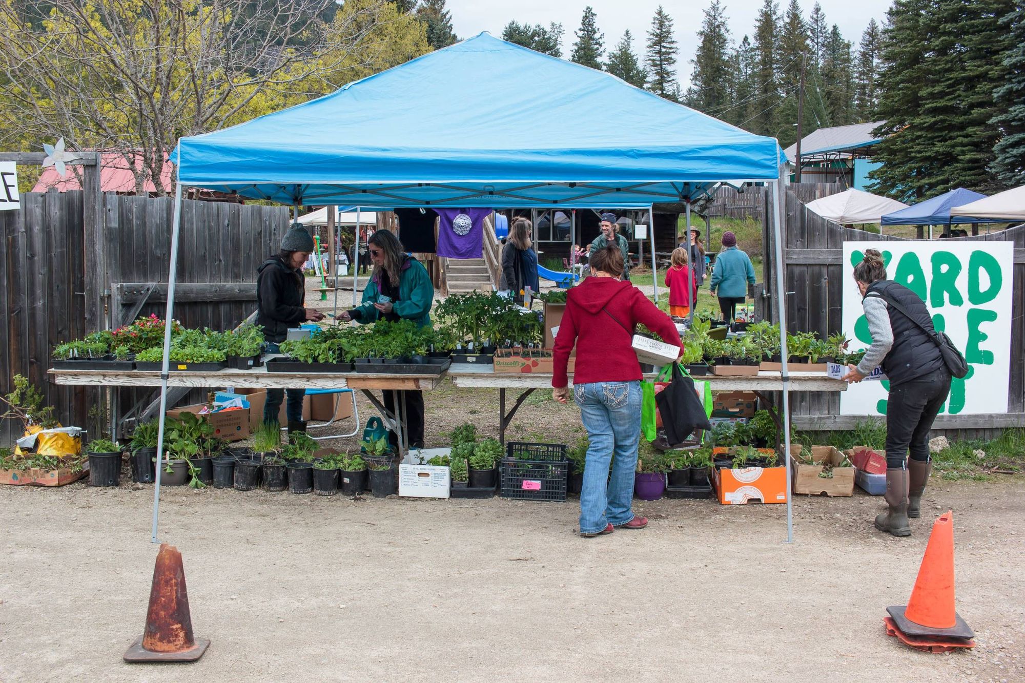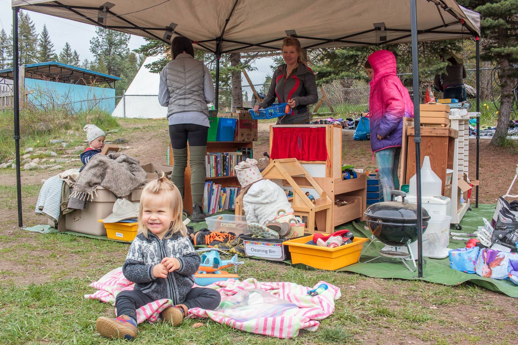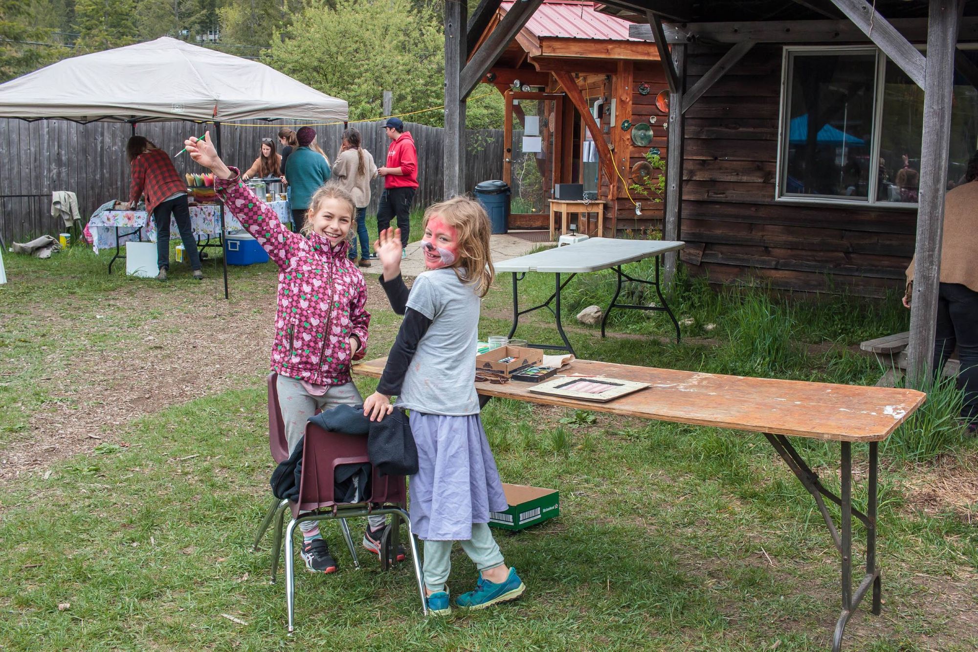La fin de semaine dernière on a participé au marché printanier de l'école. L'objectif est de faire une levée de fond pour l'école en vendant: plantes, objets de maison (à-la vente de garage) donnés par les familles, activités, nourriture et autres. Kim a cuisiné des sandwiches et wraps pour 50 personnes (sans exagérer) et on a fait popcorn et limonade pour accompagner le tout. Aylie a tenu l'atelier de maquillage pendant un temps et les enfants ont passé leur journée à jouer aux nombreuses activités. Moi je tenais le stand de bouffe, une dizaine de parents ont cuisiné de beaux délices et breuvages, miam. L'école a récolté 2500$, pas mal considérant que cette même journée l'école de Winlaw non loin compétitionnait avec nous en faisait son propre marché et la finale de football (soccer) de la vallée a occupé de nombreux parents. Très agréable journée.
