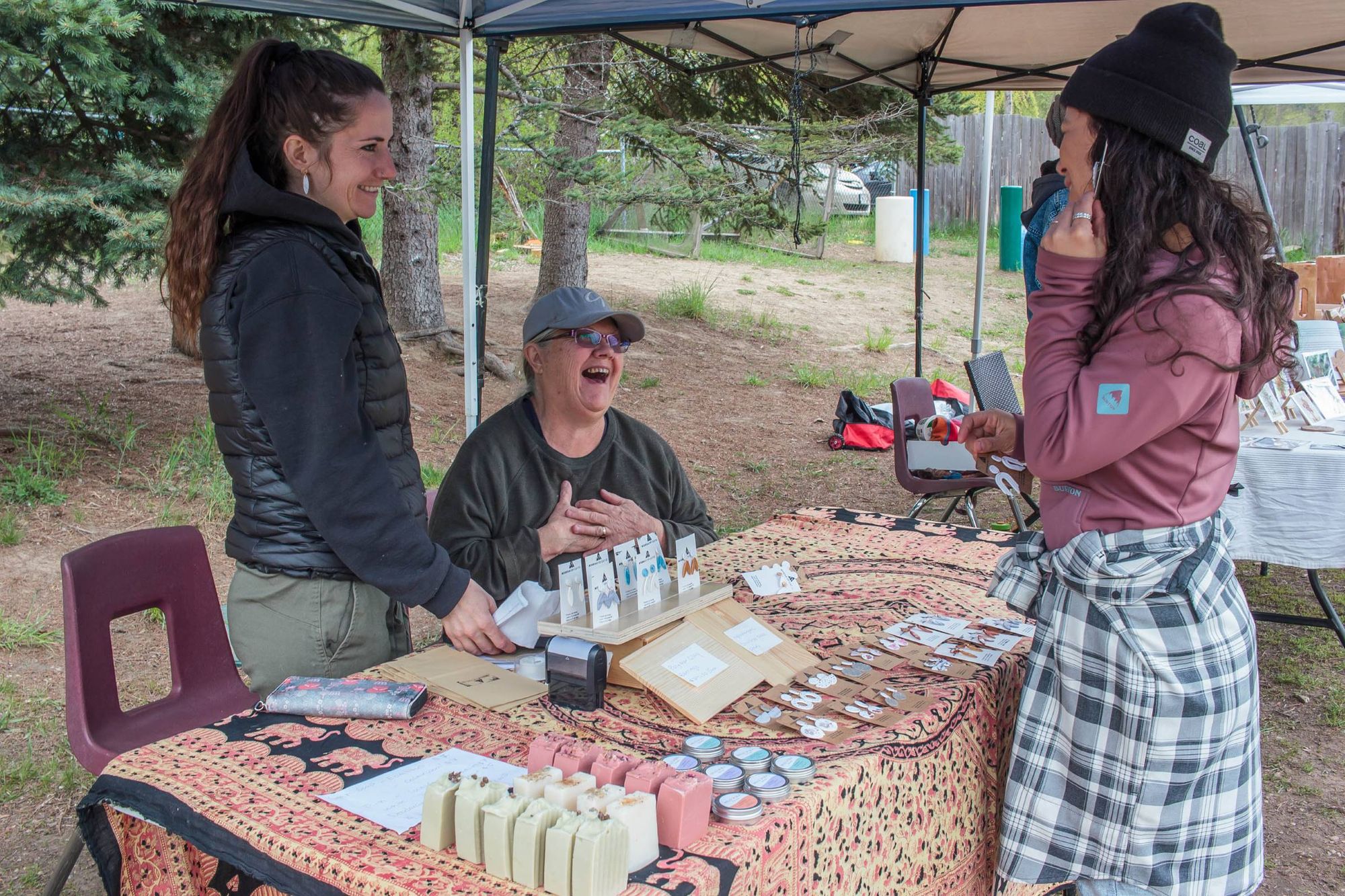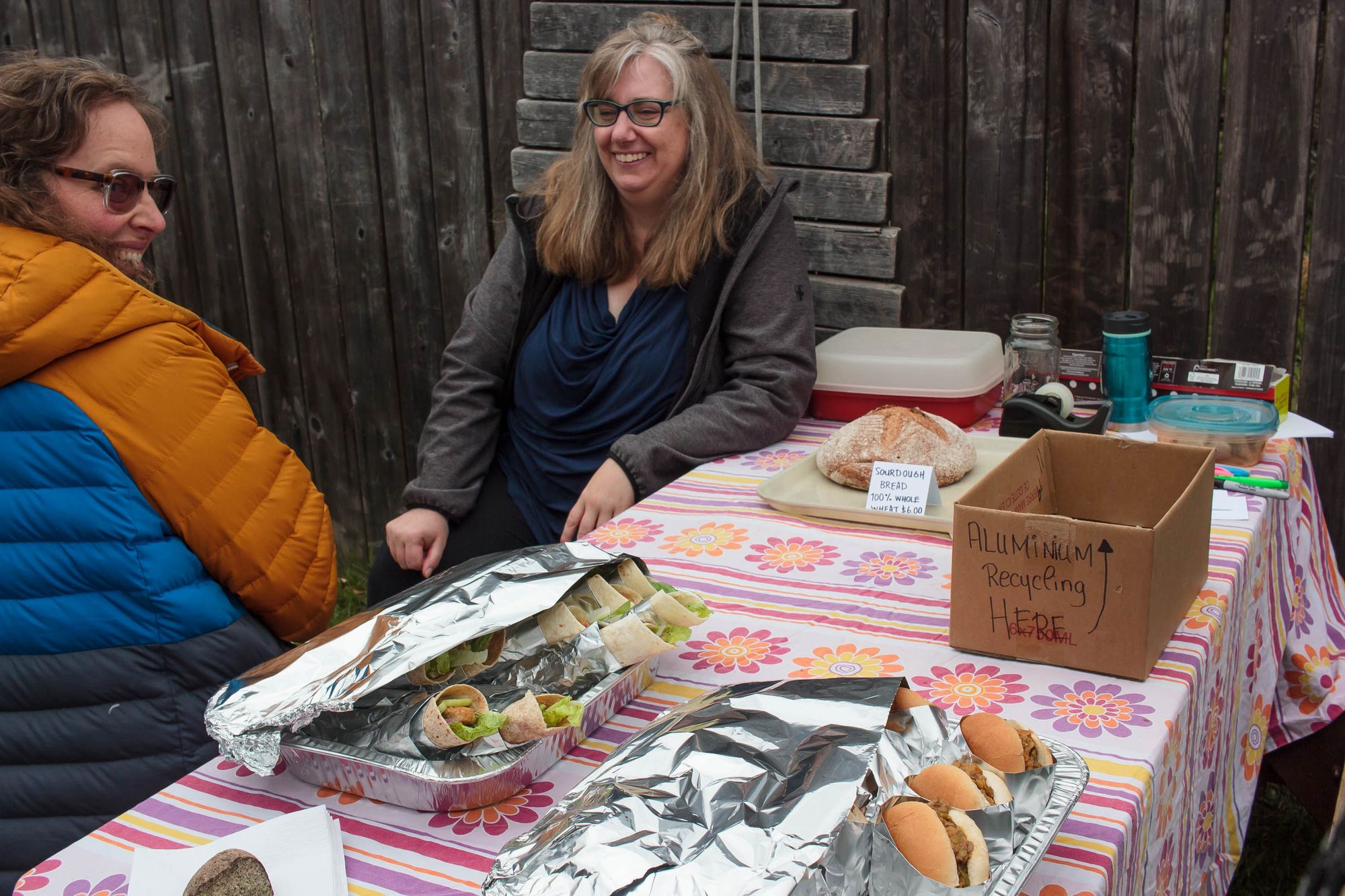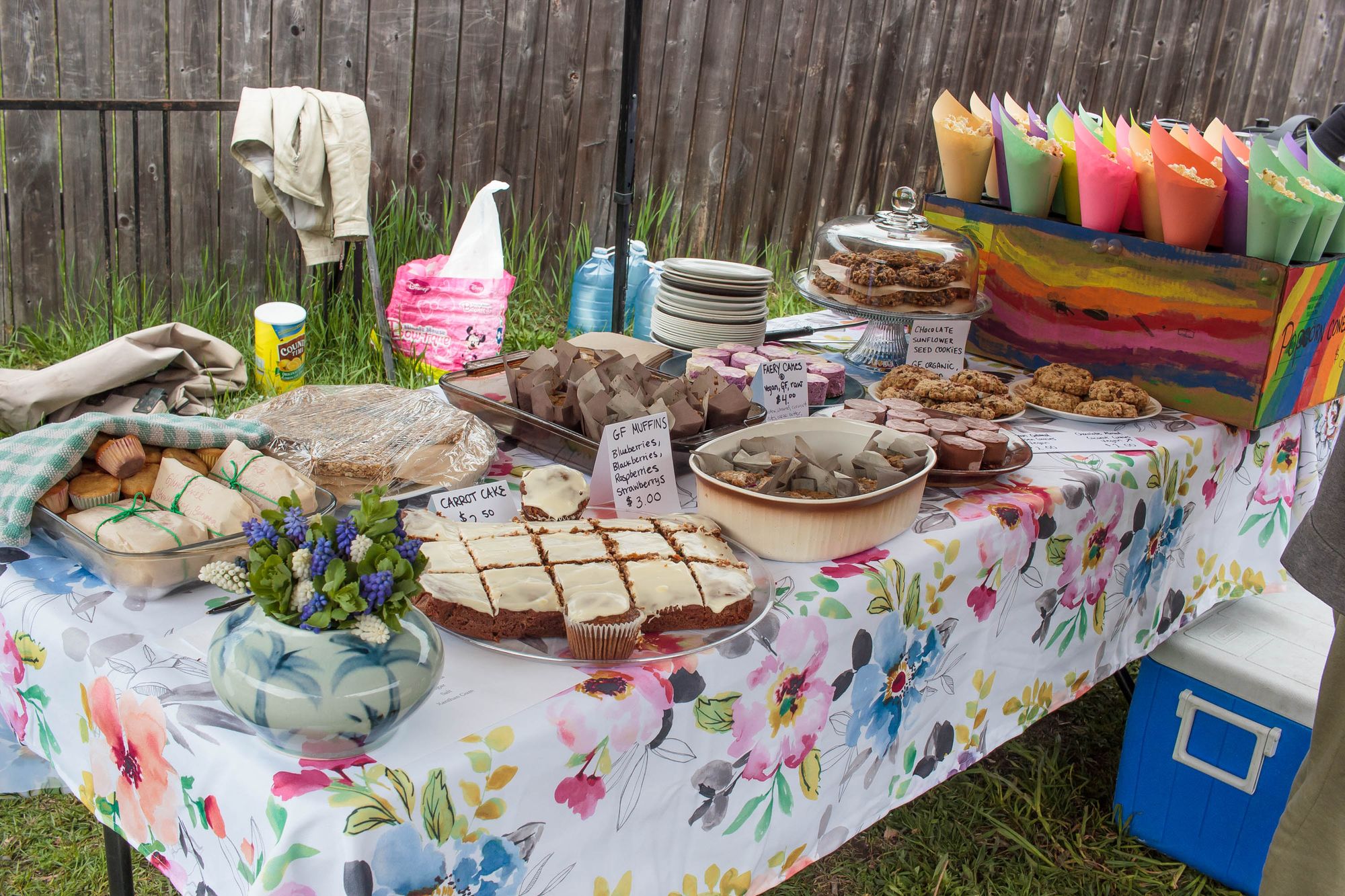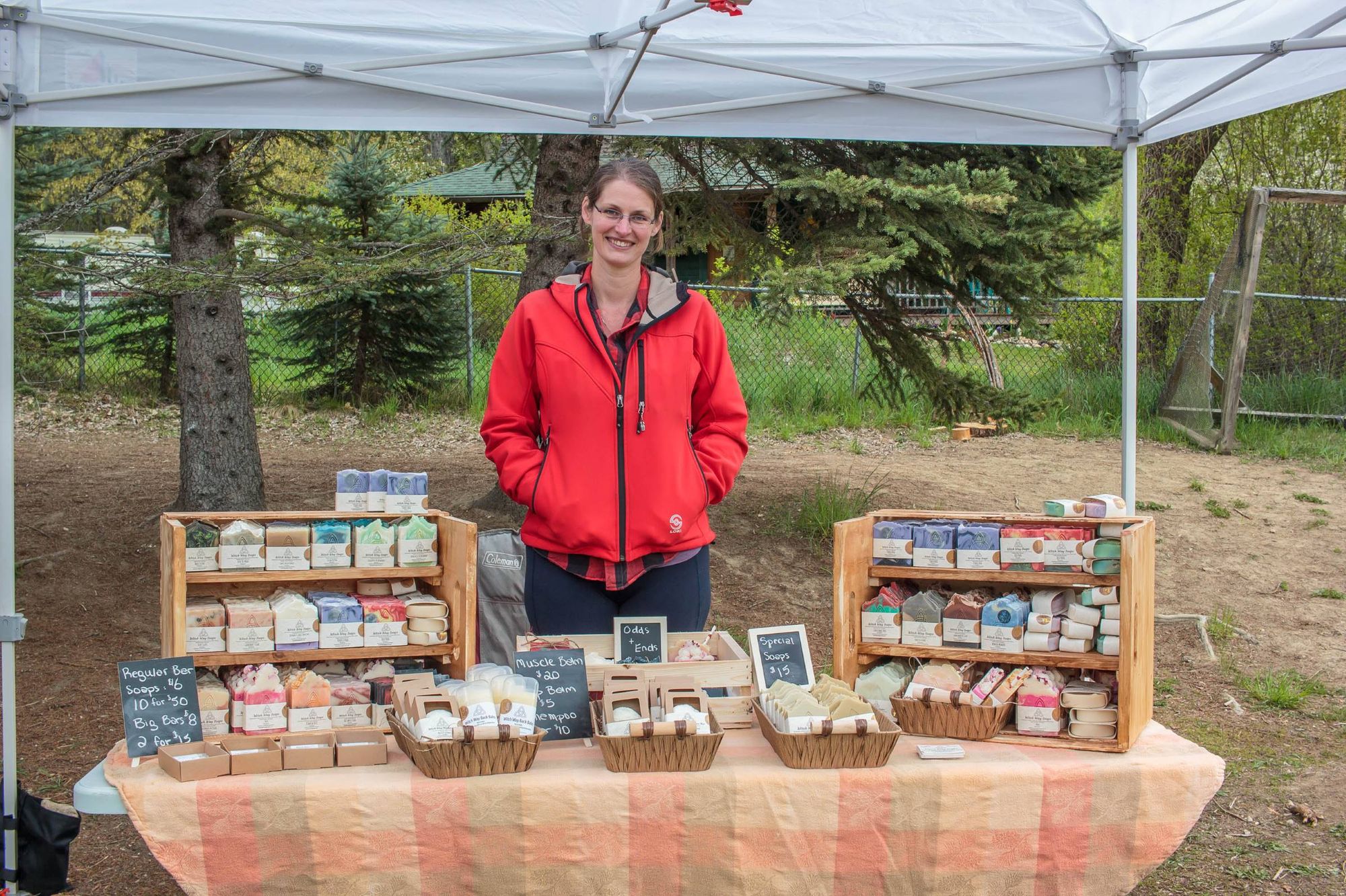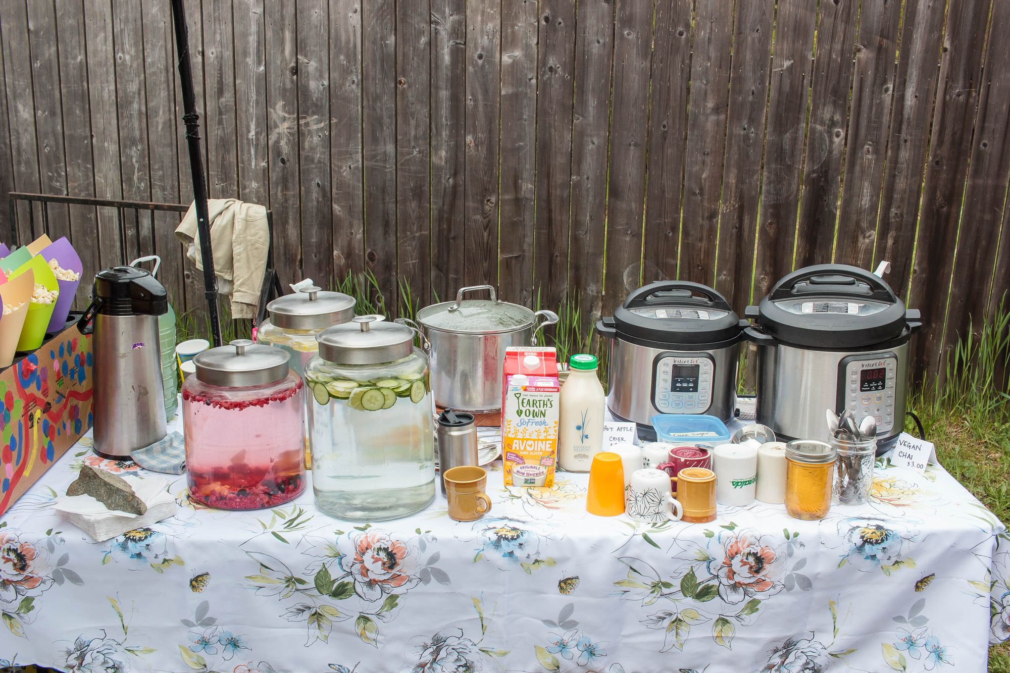La fin de semaine dernière on a participé au marché printanier de l'école. L'objectif est de faire une levée de fond pour l'école en vendant: plantes, objets de maison (à-la vente de garage) donnés par les familles, activités, nourriture et autres. Kim a cuisiné des sandwiches et wraps pour 50 personnes (sans exagérer) et on a fait popcorn et limonade pour accompagner le tout. Aylie a tenu l'atelier de maquillage pendant un temps et les enfants ont passé leur journée à jouer aux nombreuses activités. Moi je tenais le stand de bouffe, une dizaine de parents ont cuisiné de beaux délices et breuvages, miam. L'école a récolté 2500$, pas mal considérant que cette même journée l'école de Winlaw non loin compétitionnait avec nous en faisait son propre marché et la finale de football (soccer) de la vallée a occupé de nombreux parents. Très agréable journée.