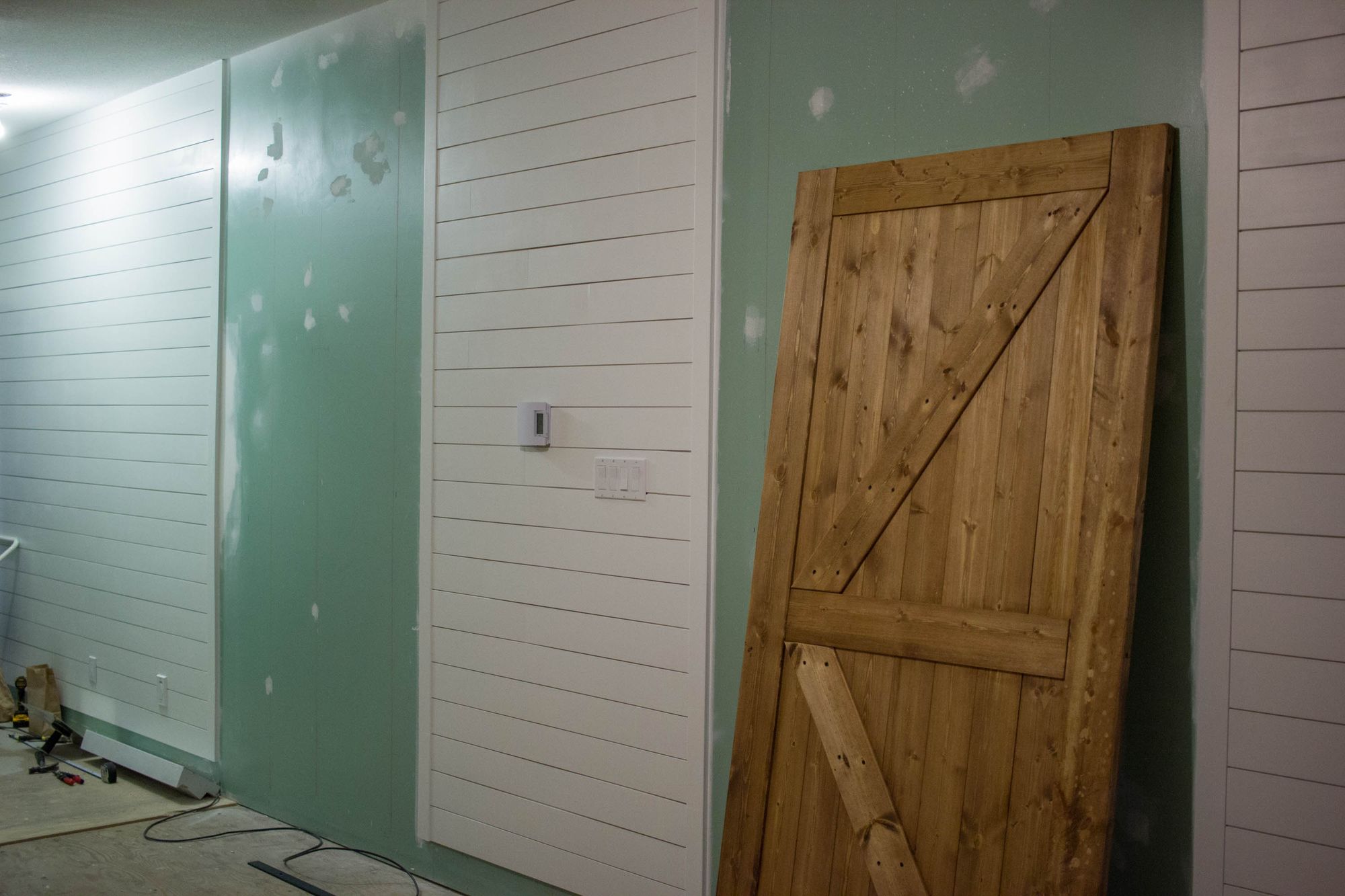 Kim a continué la chambre: cadre de porte plâtré et les fentes du shiplap ont été bouchées, et après un bon ponçage et 2 couches de peinture le résultat est pas mal du tout ! Kim a aussi teint la porte de notre chambre. Elle est parti faire des courses le weekend dernier pour monter le muret dans notre chambre, mais après être sorti de l'épicerie, le truck n'a pas redémarré, problème de starter apparemment, c'est réparé et tout va bien maintenant.