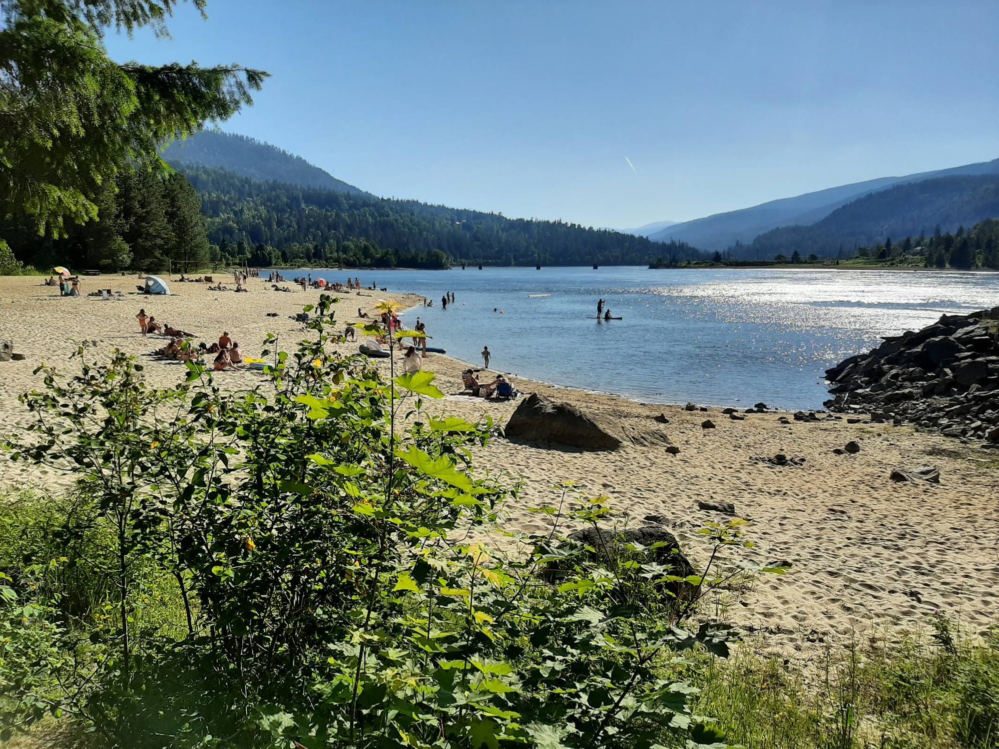 Depuis début juin on a eu pas mal de précipitations et jumelé à un printemps plus frais que d'habitude, la couche neigeuse sur les montagnes est au double de sa hauteur normale pour la saison, résultant en un niveau d'eau élevé dans les rivières et ruisseaux. C'est bien pour avoir des chutes d'eau impressionnantes, mais ça a aussi pour effet d'engloutir les plages du coin. On s'est quand même aventurés à la plage d'en bas à Crescent Valley, pour y trouver de petites alcôves de sable, notre petite plage privée bien à nous ! L'eau était glaciale mais par temps chaud ce fut bien apprécié.