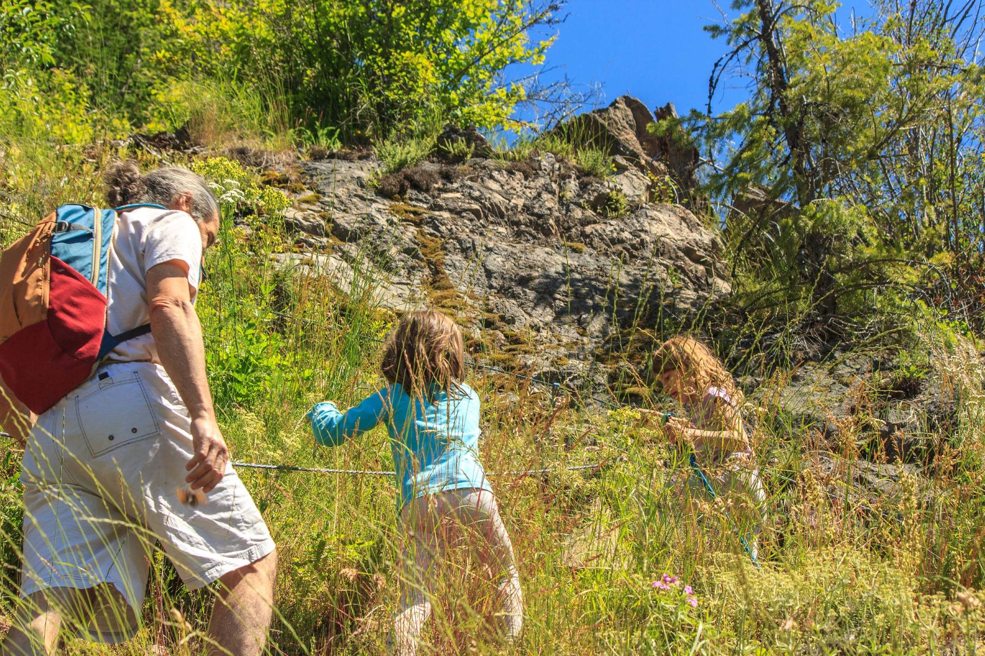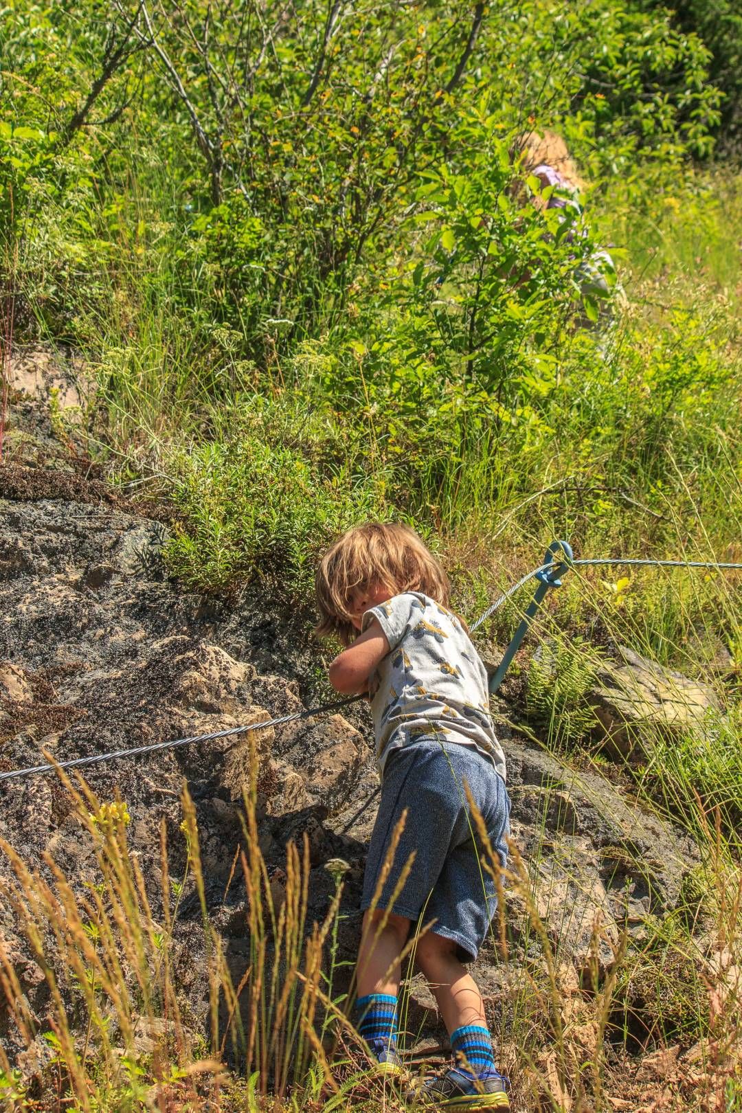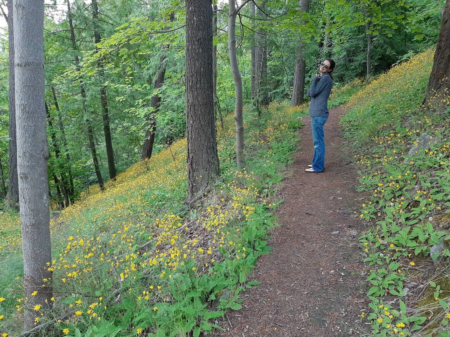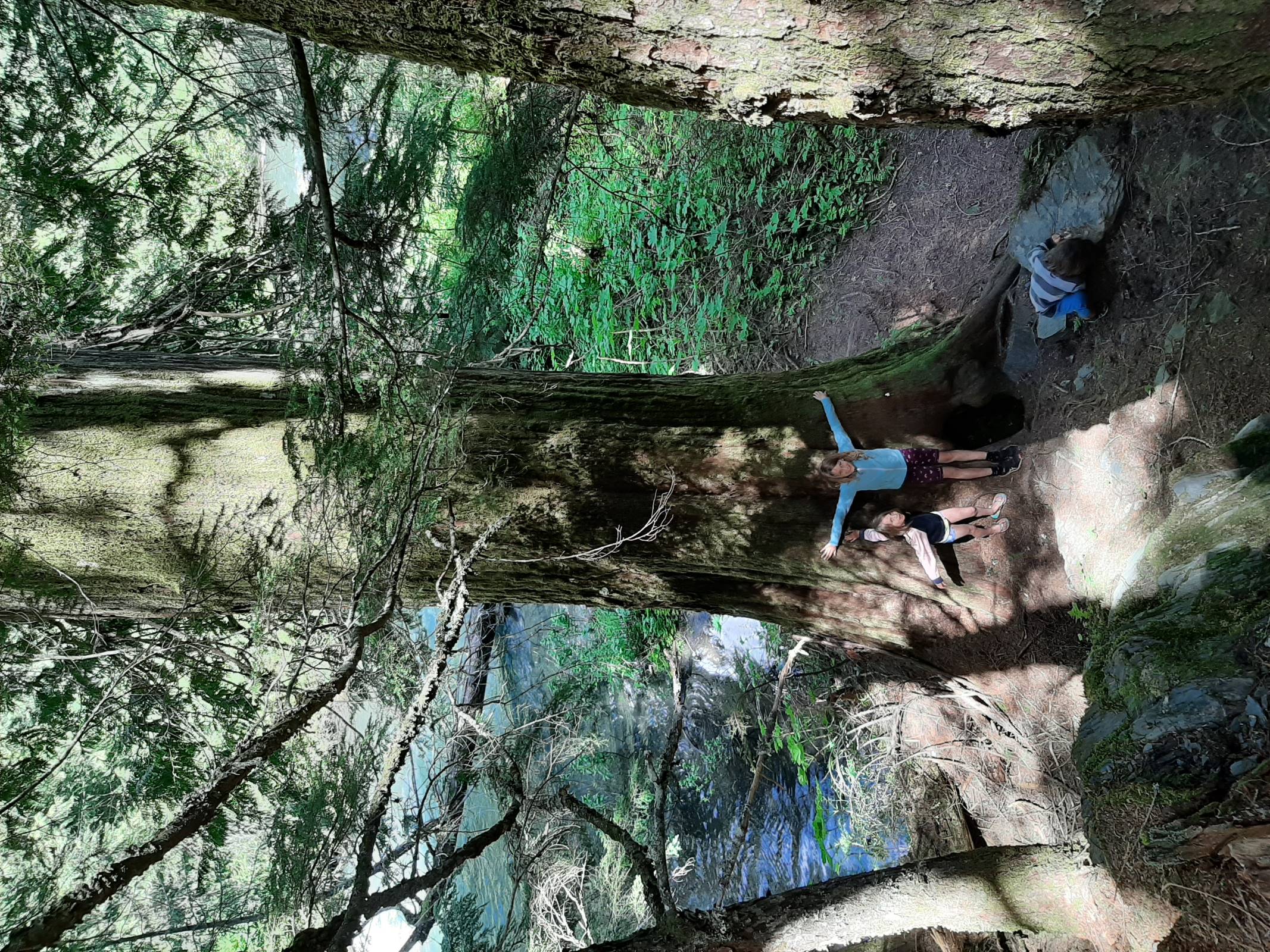 Raphaël papa et moi avons fait un petit tour sur le mont Sentinel en face de la maison, on a dû se cacher sous les cèdres au retour pour éviter de se prendre une grosse averse sur la tête.