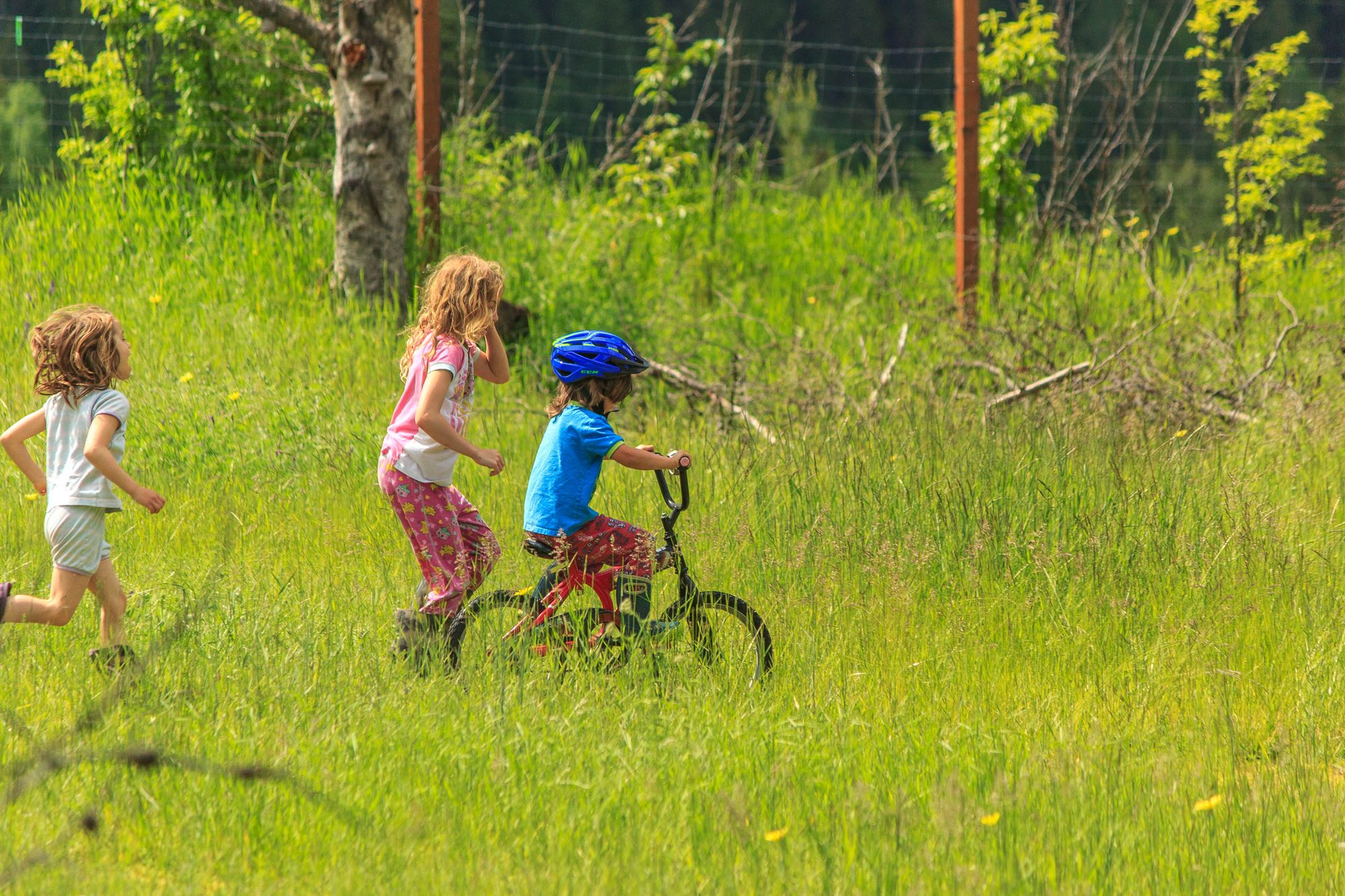 Ilian a commencé à faire du vélo 2 roues et ce, sans l'aide de papa ! Aylie a voulu lui apprendre et ils se pratiquent dans les hautes herbes de la cour pour amortir les chutes. Ilian est fier de lui !
