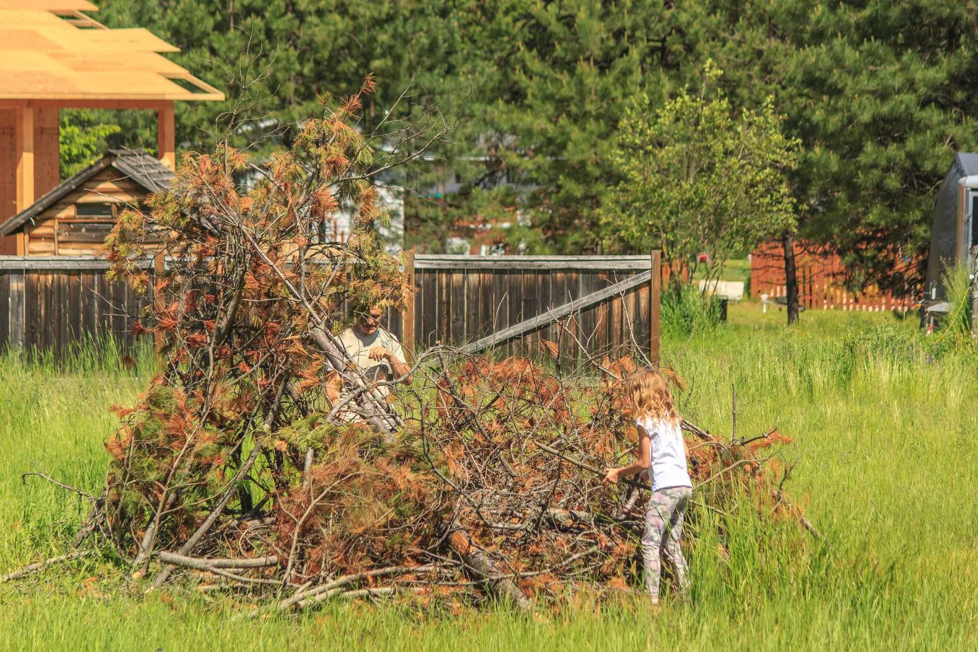 Les enfants ont construit une cachette avec papou, ils passent de plus en plus de temps dans la cour plus il y a d'installations, phew, plus besoins de les "forcer" à aller dehors !