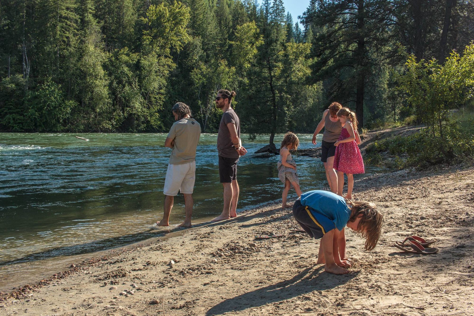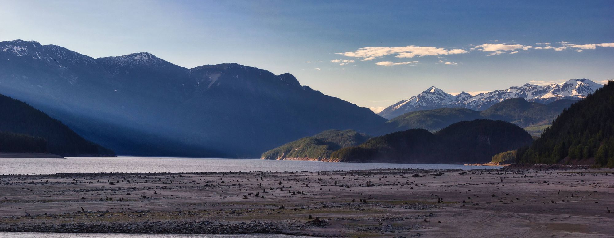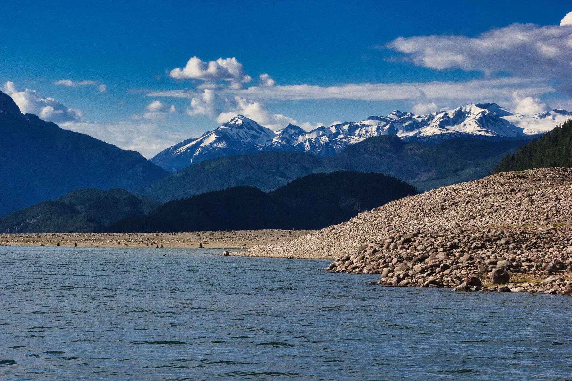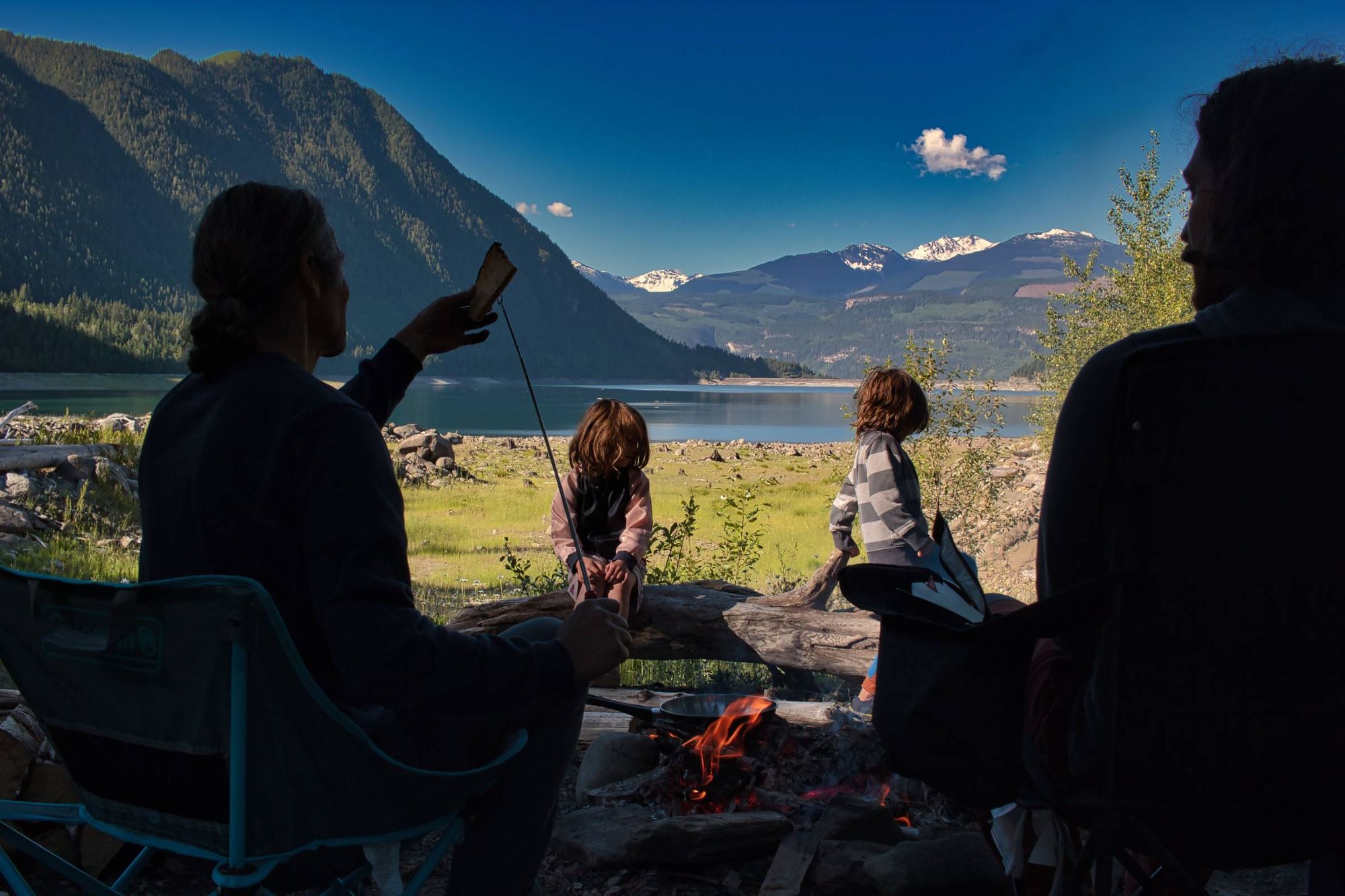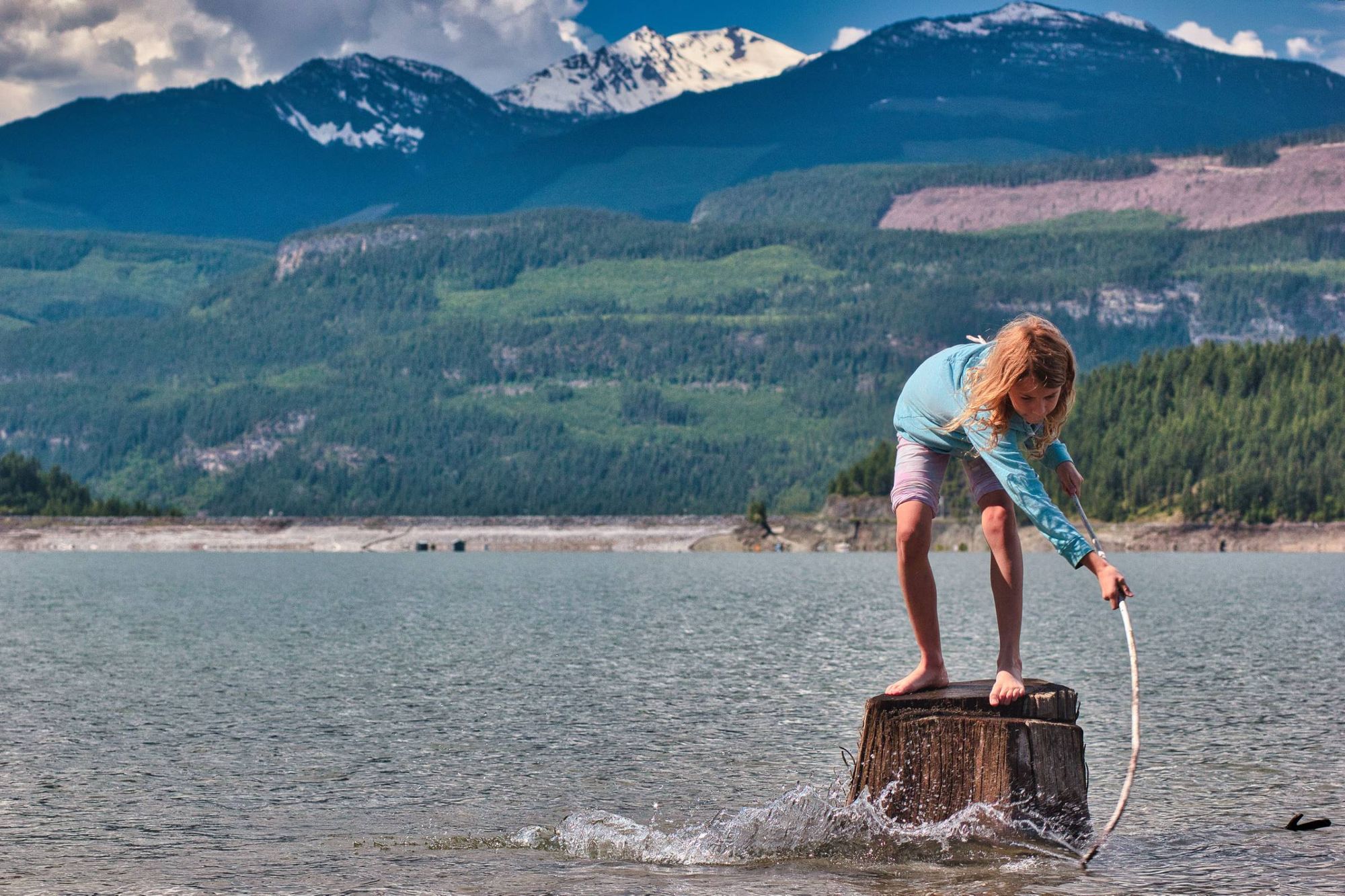 Arrivés à Trout lake, l'autoroute est passée d'asphalte à terre. En bien meilleure condition que le chemin de terre des chutes... Mais ça reste une conduite intense car il y avait beaucoup de virages, passages étroits et endroits glissants. J'ai été un peu déçu par la route, ce fut un long trajet dont la vue était principalement cachée par les arbres. Ceci dit, lorsque la vue se dégage, on peut découvrir ce magnifique lac aux couleurs azur, au pieds de montagnes géantes. Sûrement un coin magnifique pour aller camper ! J'ai voulu faire une pause au bout du lac, pensant avoir une vue sympa, mais à part une marmotte et de la verdure il n'y avait pas grand chose à voir. Kim a crû que c'était le camping, mais non, patience ! Ça en vaudra la peine ! Bref, un dernier stretch d'autoroute de terre qui paru durer une éternité et nous sommes finalement arrivés au camping. C'est un coin magnifique, 15$ la nuit (premier arrivé, premier servi) pour des installations bien meilleures que ce qu'on a connu au camping avec l'école, et une vue superbe sur le lac Duncan entouré de beaux sommets enneigés. Le lac (un réservoir artificiel) était à un niveau bas lors de notre arrivée, se remplissant tranquillement lors de nos 3 jours de visite. On aurait pu avoir l'eau bordant notre camping, mais ce n'était pas si mal car cet espace supplémentaire nous a permis d'avoir un grand terrain tranquille ou Béa pouvait s'adonner à ses activités préférées sans déranger les voisins. On était encore en saison de moustiques, donc le matin comme à la tombée de la nuit, ces insectes rodaient autour de nous pour espérer se faire un festin de notre chair. On a pas eu tant de piqûres que ça au final mais bon, faudrait qu'on revienne un jour en fin de saison pour mieux en profiter. Mes parents, mon frère et les enfants ont dormis dans la tente alors que Kim et moi avons installé un matelas dans le coffre de notre cmax. Béa a dormi dans le coffre du camion quand à elle, de la place pour tout le monde bien qu'un peu serrés dans notre petite voiture. Sorties plage, grillades sur le feu, promenades au coucher de soleil, ce fut une belle expérience. Kim a cuisiné comme une chef, on s'est régalés.