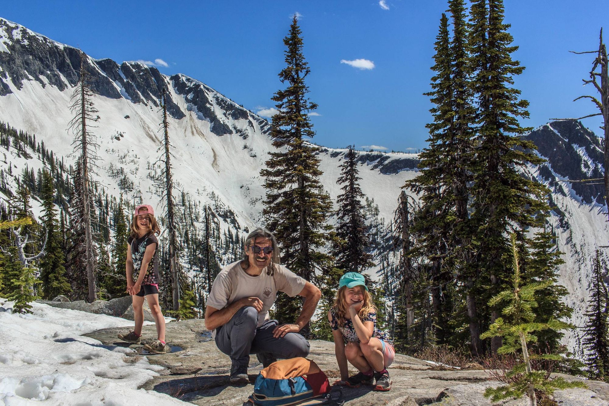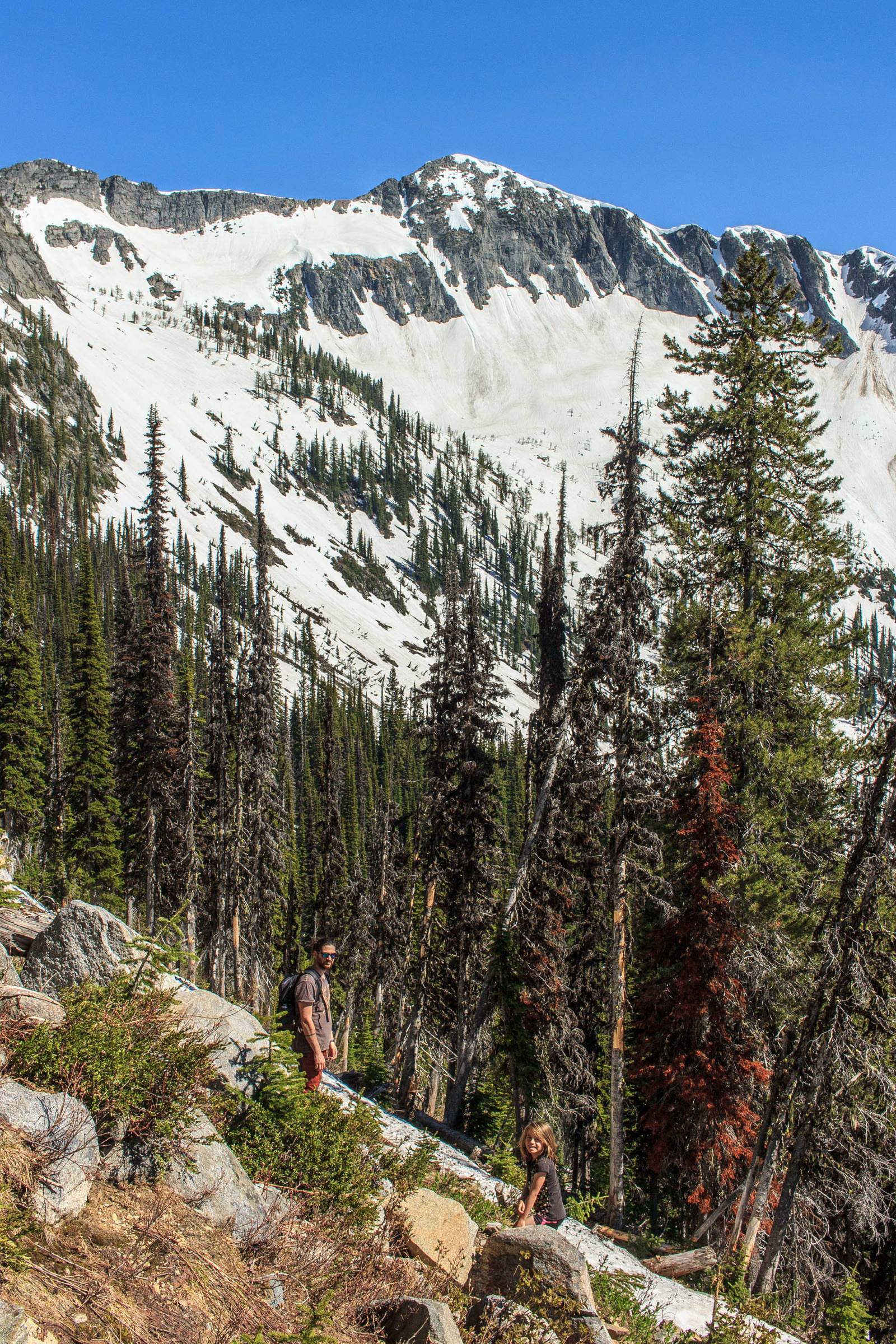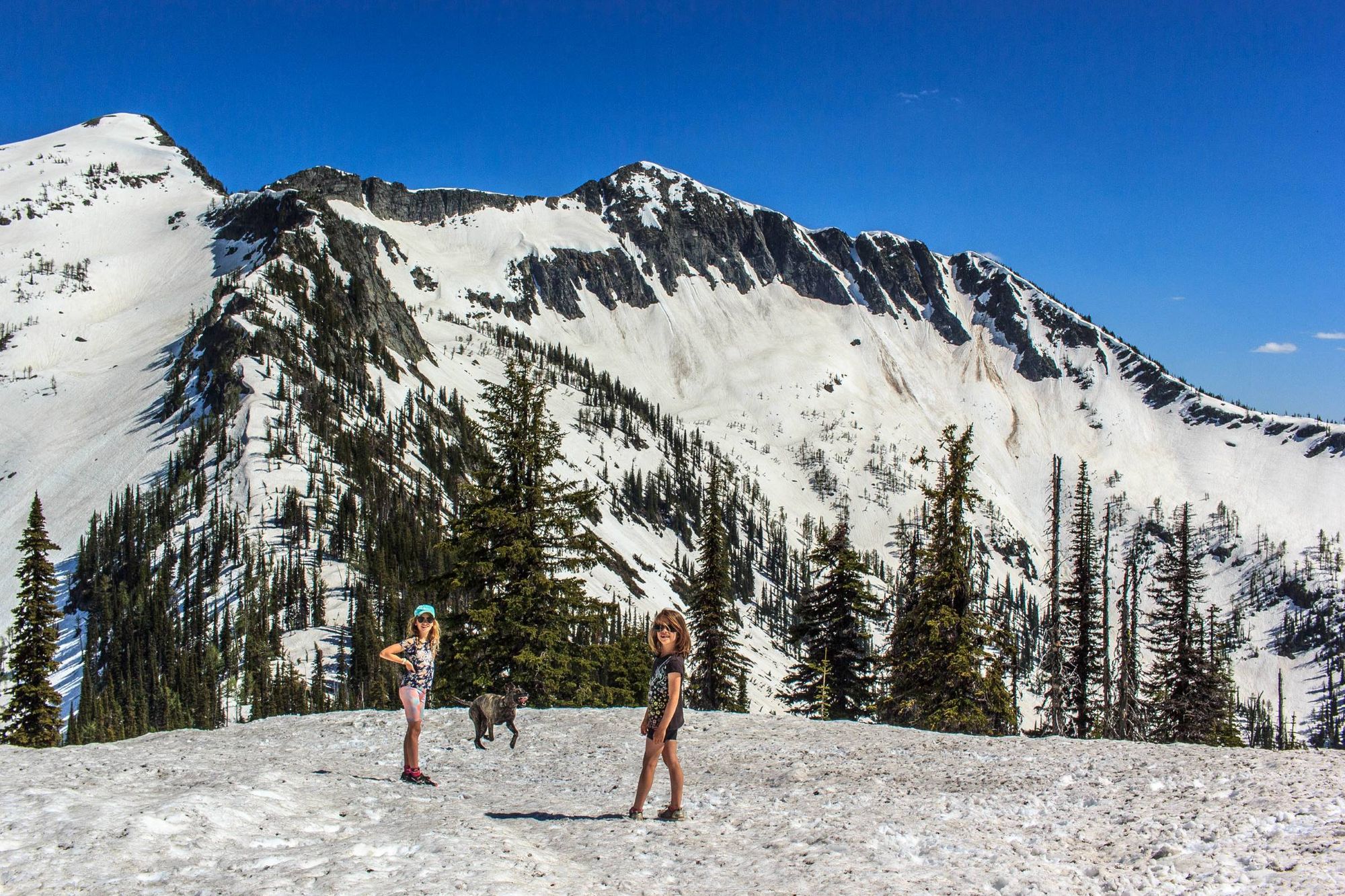 Arrivés au sentier, le départ commence à 1800m d'altitude, pour dépasser 2200m à l'arrivée. Assez rapidement on passe quelques tas de neige, et comme pour White Queen, les exceptions devinrent la norme. Mais cette fois ci, la majeure partie de la randonnée s'est fait dans la neige, conditions plus difficile globalement car on s'enfonce, parfois avec la surprise de tomber sur un trou, et on glisse beaucoup. Bref une rando pas facile mais tout le long, le paysage était grandiose comme dirait ma mère. Arrivés en haut, une très belle vue panoramique s'offrait à nous. Nous étions SEULS, pas une âme dans les parages. Jeanne impressionne comme toujours, elle suit le groupe à vitesse d'adulte et je ne l'ai jamais entendu se plaindre lors de nos sorties, très déterminée la petite, et toujours avec le sourire !