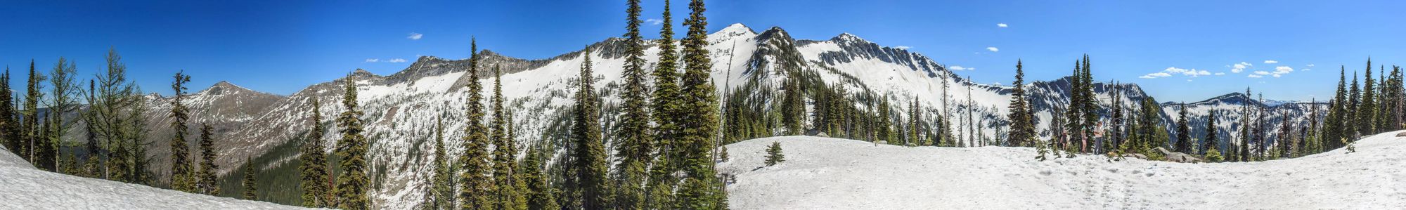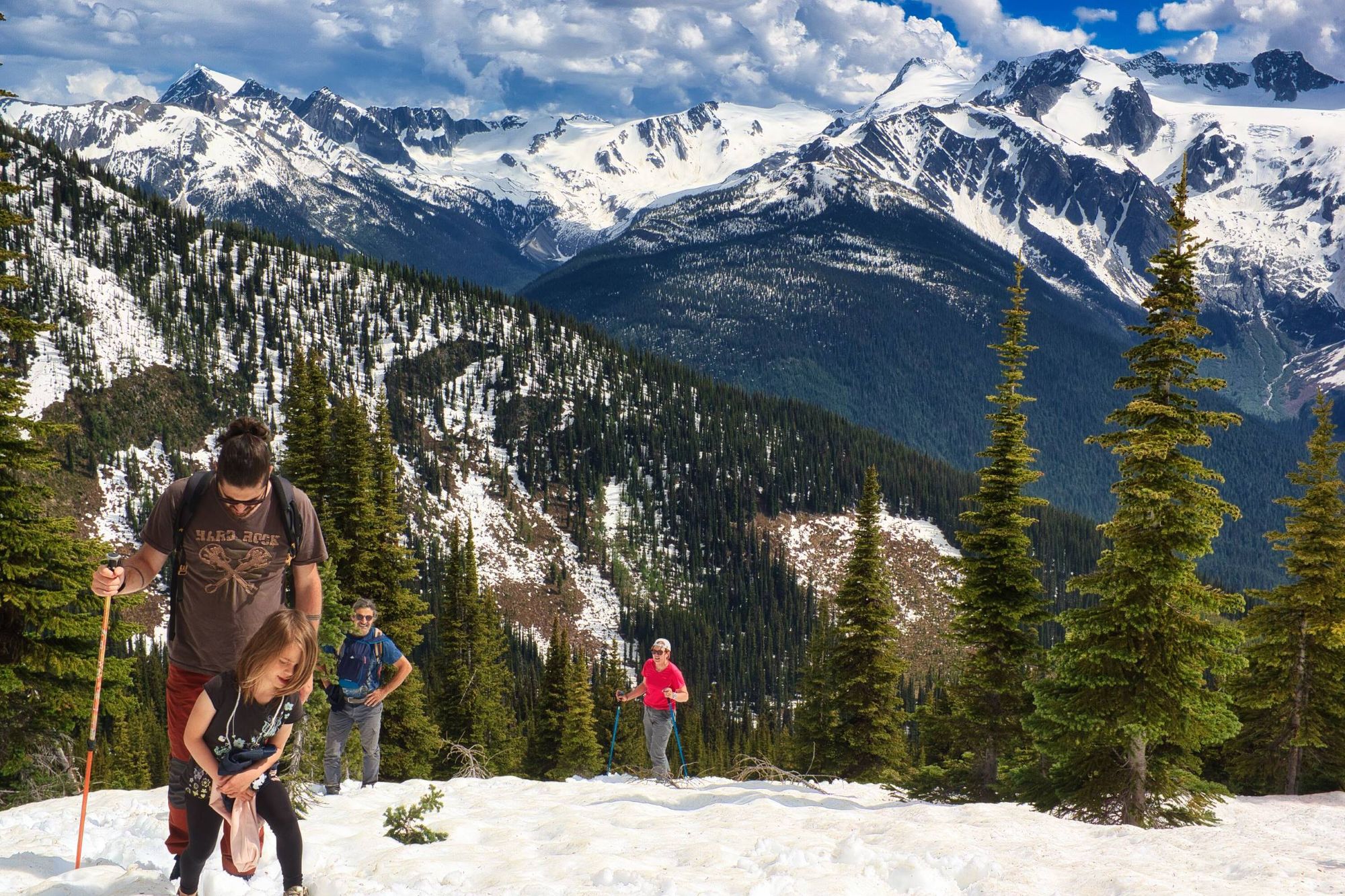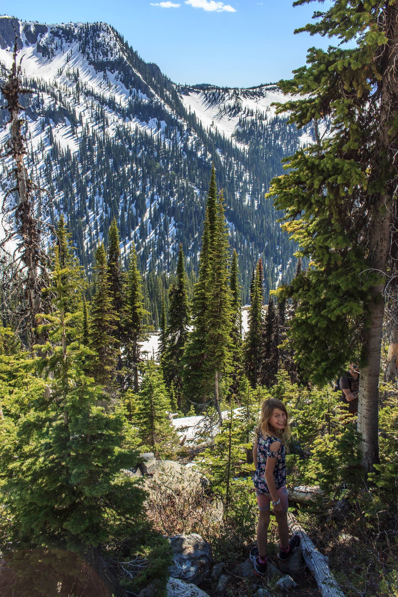 Arrivés au sentier, le départ commence à 1800m d'altitude, pour dépasser 2200m à l'arrivée. Assez rapidement on passe quelques tas de neige, et comme pour White Queen, les exceptions devinrent la norme. Mais cette fois ci, la majeure partie de la randonnée s'est fait dans la neige, conditions plus difficile globalement car on s'enfonce, parfois avec la surprise de tomber sur un trou, et on glisse beaucoup. Bref une rando pas facile mais tout le long, le paysage était grandiose comme dirait ma mère. Arrivés en haut, une très belle vue panoramique s'offrait à nous. Nous étions SEULS, pas une âme dans les parages. Jeanne impressionne comme toujours, elle suit le groupe à vitesse d'adulte et je ne l'ai jamais entendu se plaindre lors de nos sorties, très déterminée la petite, et toujours avec le sourire !